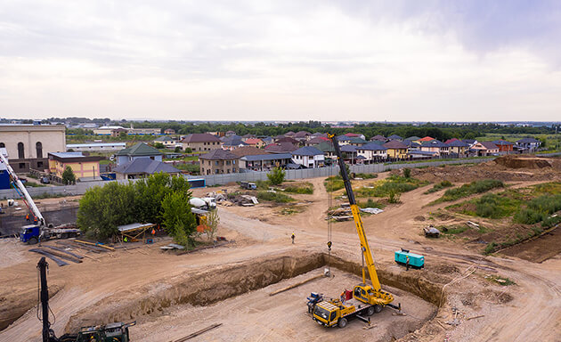 укрепление основания фундамента завершено на 100%, заложен балласт
