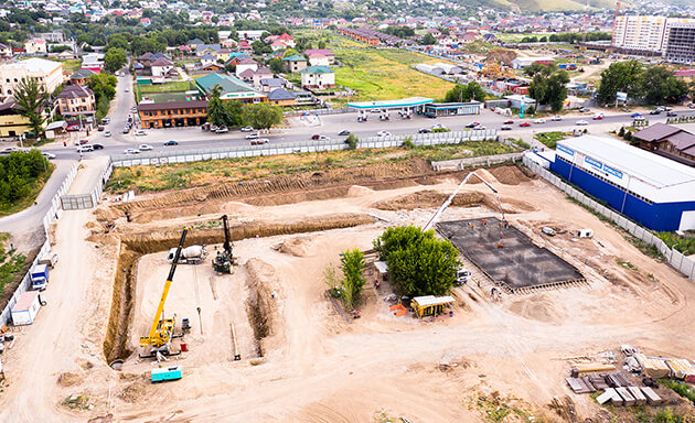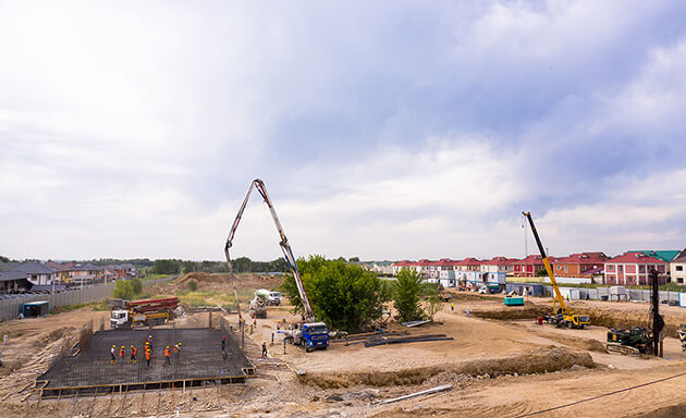 - Завершено укрепление основания фундамента, заложен балласт. Залита подбетонка и фундаментная плита.