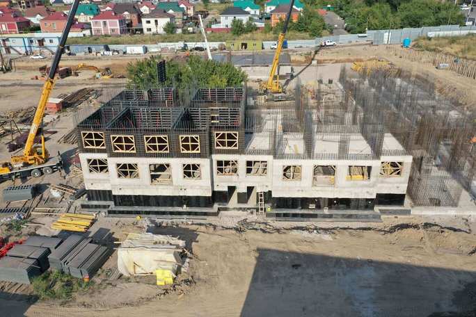 12 блок – стены подвала залиты, ведутся работы над этажными перекрытиями.